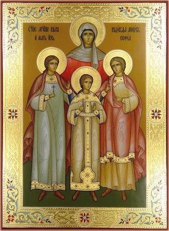 Описание: В царствование императора Адриана жила в Риме вдова, родом итальянка, по имени София, что в переводе значит премудрость. Она была христианка, и сообразно своему имени, жизнь свою вела благоразумно по той премудрости, которую восхваляет Апостол Иаков, говоря: "мудрость, сходящая свыше, во-первых, чиста, потом мирна, скромна, послушлива, полна милосердия и добрых плодов" (Иак.3:17). Сия премудрая София, живя в честном супружестве, родила трех дочерей, коим нарекла имена, соответствующие трем христианским добродетелям: первую дочь назвала она Верою, вторую Надеждою, а третью Любовью. Да и что иное могло произойти от премудрости христианской, как не Богу угодные добродетели? Вскоре после рождения третьей дочери София лишилась супруга. Оставшись вдовой, она продолжала жить благочестиво, угождая Богу молитвою, постом и милостынею; дочерей же своих она воспитывала так, как может сделать это премудрая мать ...