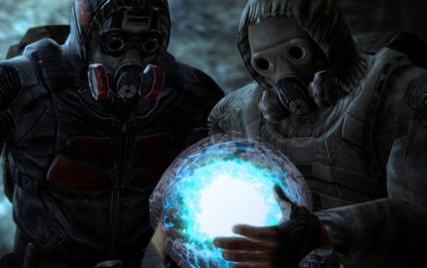 Долговец и одиночка смотрят артефакт.