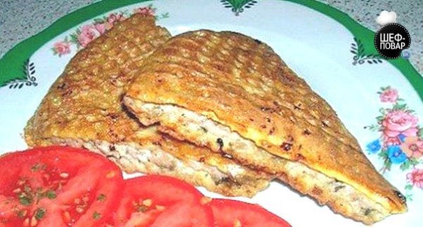 Описание: Мясо в вафелькахИнгредиенты:Вафельные коржи – 2 шт.Фарш – 600 гр.Грибы – 400 гр.Лук – 2 шт.Яйцо – 1 шт.Соль и перец.Приготовление:Почистить и порезать лук кубиками.Грибы порезать ломтиками и обжарить с луком.Фарш смешать с обжаренными грибами и луком.Посолить, поперчить и тщательно перемешать.На блюдо положить один вафельный корж.Разложить на нем весь фарш одним слоем.Накрыть вторым коржом и убрать в холодильник на полчаса.Когда конструкция настоится разрезать на порционные дольки.Каждую дольку обмакнуть во взбитое яйцо и обжарить с обеих сторон.