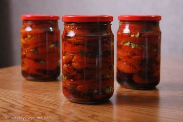 Описание: Помидоры по-корейски на зимуНам необходимо:-спелые (не перезрелые) помидоры — 2 кг,-морковь — 4 штуки,-болгарский перец (цветной) — 5 штук,-столовый уксус (9%) — 100 мл,-растительное масло — 100 мл,-чеснок — 5 зубчиков,-молотый перец чили — 1 ст. ложка,-соль — 2 ст. ложки,-сахарный песок — 100 грамм,-свежая зелень петрушки, укропа, кинзы по вкусу.Готовим:Овощи подготавливаем,моем,чистим.. Затем морковь, болгарский перец и чеснок измельчаем с помощью блендера или пропускаем через мясорубку.В полученную смесь из овощей добавляем сахар, соль, молотый перец чили, растительное масло, уксус и тщательно перемешиваем, желательно до полного растворения сахара и соли.Зелень тщательно промываем и затем нарезаем очень мелко.Помидорки тщательно промытые и с вырезанными плодоножками нужно разрезать на две части. Помидоры для данной заготовки желательно выбирать одинакового размера. Затем половинки помидоров выкладываем в предварительно стерилизованные банки, выкладываем слой из помидоров, затем слой из перемолотых овощей, а после кладем зелень. И так до конца пока не закончатся ингредиенты. Затем стерилизуем банки с помидорами минут 15 (в зависимости от размера банок).Затем закатываем банки крышками, и переворачиваем вверх дном, укутываем и оставляем постоять часов пять..Приятного аппетита!