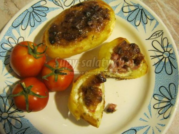 Описание: КРОШКА - КАРТОШКА: Для приготовления блюда на 3персоны, Вам потребуются:• 9 крупных картофелин• 300 гр. сервелата, копченойили полукопченой колбасы• 3 столовых ложки майонеза• 2 зубчика чеснока• приправа «Универсальная»,пара щепотокКартофель очистить, при этом,следует счищать как можнотоньше кожуру.Каждую картофелинуразрезать вдоль и вырезатьвнутреннюю часть каждойполовинки, чтобы получилисьуглубления(вырезать можно спомощью маленькой ложки,предварительно сделавнадсечку ножом). Следуетпомнить, что стенки половинокне должны быть слишкомтонкими, примерно 7-8 мм.Подготовленный картофельлучше хранить в миске схолодной водой, так он непотемнеет и не потеряетполезные свойства.Следующим шагом, будетприготовление соуса. Нужнораздавить чеснок или мелконарезать, и смешать его смайонезом, туда же добавитьпару щепоток приправы, всеперемешать.Полученной смесью, смазатьвнутреннюю часть каждойполовинки картофеля,примерно по пол чайнойложки. Затем наполнить ихколбасой, нарезаннойкубиками,и снова смазать соусом, толькосерху.Колбасу лучше выбратьпожирнее. При запекании жиррастопится, и картошкаполучится сочной и нежной.После этого, нужно включитьдуховку и оставить ееразогреватся. А в это время,смажте противеньподсолнечным маслом ивыложите на негофаршированый картофель.Поставьте его в разогретую до180 С духовку и запекайте40-50 минут, в зависимости отразмера картофеля. Сверхудолжна образоватсязолотистая корочка. Есликартофель мелкий, то хватит40-ка минут, а если покрупнее,то 50-55 минут будетдостаточно.Приятногоаппетита!