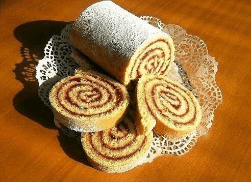 Описание: Быстрые рулетикиИнгредиентыразрыхлитель 1 чайная ложка;молоко сухое 2 столовые ложки;сметана 2 столовые ложки;любое варенье;пшеничная мука 200 грамм;сахарный песок 130 грамм;куриные яйца 3 штуки.Приготовление1. Яйца взбиваем с сахаром.2. Добавляем разрыхлитель теста, просеянную муку, сухое молоко и сметану.3. Хорошо перемешиваем.4. На разогретый и смазанный растительным маслом противень выливаем тесто, разравниваем его.5. Выпекаем 12-15 минут.6. Приготовленный бисквит намазываем быстро вареньем и, пока он не остыл, сворачиваем в рулет.7. Остывший рулет нарезаем кусочками.Всё, быстрые рулетики готовы.Приятного аппетита!