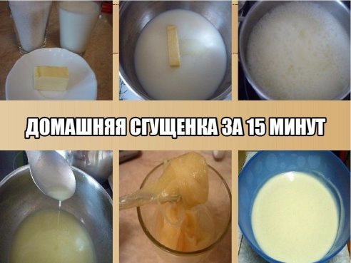 Описание: Для вас дорогие хозяюшки! Оченьвкусная домашняя сгущенка за 15минут .которую обязательно стоитпопробовать приготовить…Порадуйте своих домашних . 200 гр молока200 гр сахара ( или пудры)20 гр масла сливочного Приготовление: Смешиваем все продукты вкастрюльке (желательно с высокимибортиками,потому что масса будетсильно пениться )На медленном огне доводим докипения Когда начнет кипеть огоньувеличиваем и варим (увариваем) всеровно 10 мин. !!! Будет очень сильнопениться.После 10 минут масса будет оченьжидкая! Не пугайтесь -так и должно быть!!Выключаем,остужаемПостепенно густеет ,когда остывает.Переливаем в баночку и вхолодильник. Через несколько часовона еще загустеет Из данного количества получается~200 гр. ( у меня получилось 213гр) На этой фотографии виден мойпредыдущий неудачный опыт)я решила ,что слишком жидкаяполучается и оставила выпариватьсяеще 10 мин.Она загустела потом так,что пришлось скатать из нее ириски)Вкусно конечно ,но хотелось все же внее блинчики макать.Поэтому только 10 минут . Очень,очень вкусная получилась!!!Запах и цвет - не хуже ,чем вмагазине! И делать очень быстро.