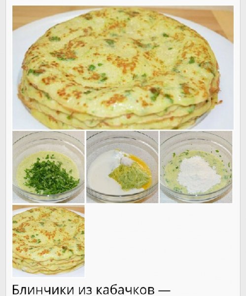 Описание: Блинчики из кабачков — заслужили мою любовь! Я пеку их каждый день!Получилось очень вкусно, советую и вам приятного аппетита!Ингредиенты:Кабачки 450 г.Кефир 300 мл.Яйца 4 шт.Мука 350 г.Масло подсолнечное 1 ст. л.Петрушка 2 ст. л.Соль 1 ч. л.Сода 0,5 ч. л.Масло сливочное для смазки блинчиков.Приготовление:Кабачок натереть на мелкой терке, отжать сок. Добавить, взбитые яйца, соль, кефир, порубленную петрушку и все перемешать.Постепенно добавляя муку, замешиваем не густое тесто.Добавить 1 ст. л. растительного масла, соду, перемешать. Дать постоять тесту 20 минут.Горячую сковороду смазать растительным маслом, формируем блинчик и жарим с обеих сторон до золотистого цвета.Готовый блинчик смазать сливочным маслом.