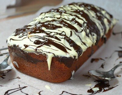 Описание: ВАНИЛЬНЫЙ КЕКС С ВЛАЖНОЙ ШОКОЛАДНОЙ НАЧИНКОЙ! Изюминка этого кекса - шоколадная начинка. Она получается в меру влажной, с интенсивным шоколадным вкусом, а йогурт в составе кекса придает ему дополнительную нежность! Ингредиенты: (на форму длиной 26 см) • Мука - 170 г , • Масло сливочное - 125 г , • Сахар - 200 г , • Яйца - 3 шт , • Йогурт - 150 г йогурта • Какао-порошок - 40 г , • Вода - 60 мл , • Ванильная эссенция - 3 капли , • Сода - 0,5 ч. л , • Соль - 0,5 ч.л. Для глазури: • Шоколад белый, не пористый - 100 г (плитка) , • Шоколад темный - 40 г. Приготовление: 1. Смешиваем муку, соду и соль. 2. В большой миске смешиваем сахар и масло комнатной температуры до кремообразной консистенции. Добавляем яйца, тщательно перемешиваем вручную или миксером. Порциями добавляем муку с содой и солью, затем йогурт, аккуратно перемешивая. 3. Какао смешиваем с водой. Следим, чтобы не образовались комочки. Треть теста вливаем в другую ёмкость и соединяем с какао. В белое тесто добавляем ванильную эссенцию. 4. Форму смазываем сливочным маслом. На дно выливаем половину белого теста, затем шоколадное и потом вторую половину белого теста. 5. Выпекать кекс следует в предварительно разогретой до 180 градусов духовке 45-55 минут. 6. Остывший кекс вынимаем из формы. 7. Для глазури растапливаем белый шоколад на водяной бане или в микроволновке. Покрываем поверхность кекса белым шоколадом. Растапливаем темный шоколад и поливаем им кекс.