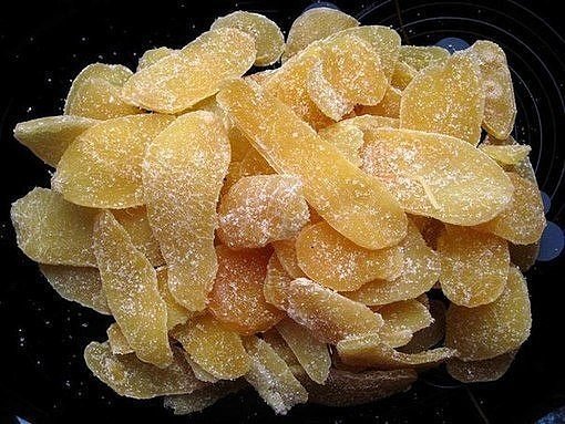 Описание: Цукаты из имбиря – универсальная «таблетка» от простуды Рецепт приготовления цукатов из имбиря. Приготовление очень простое. Прежде всего вам надо купить корень имбиря. Нарезать имбирь тонкими ломтиками. Его нужно 200 граммов. Положить все в кастрюлю, залить водой так, чтобы вода покрывала имбирь, поставить на огонь и варить минут 30. В процессе варки вся чрезмерная жгучесть уходит. Воду слить. Приготовить сироп. 3 столовые ложки воды с 6 столовыми ложками сахара перемешать и варить, как обычный сироп. Как закипит, добавить проваренный имбирь. Погрузить их в сироп. Варить на медленном огне, постоянно помешивая. Варить до полного выпаривания жидкости. Тщательно следите за процессом, чтобы ничего не пригорело. Все это остудить. Каждый лепесток имбиря обвалять в сахарном песке и выложить на противень, застеленный пергаментной бумагой. Подсушить. Как только все высохнет, переложите все в герметично закрывающуюся емкость. Может храниться 3 месяца. 1-2 кусочка вместе с чаем — не торопясь, наслаждаясь вкусом — это то, что принесет вам здоровье. Рассасывайте, как леденец. Скажу честно, цукаты такие не всем могут понравиться. Это как оливки или маслины, или другой любой продукт. Кто-то в восторге, а кто-то терпеть не может. На мой взгляд, замечательно. Попробуйте и вы. Минимальные затраты, максимум полезности