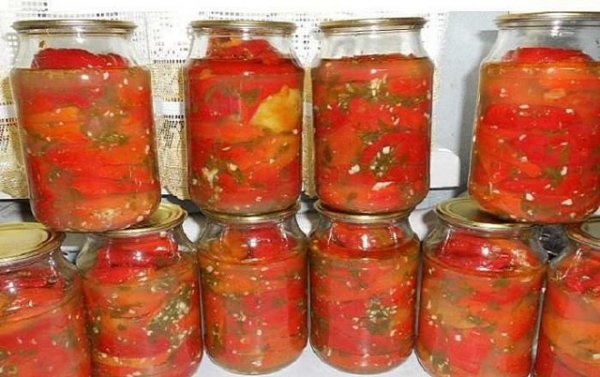 Описание: Перец болгарский с чесноком на зимуЧтобы приготовить перец болгарский с чесноком на зиму, вам понадобится:перец болгарский 3 кгчеснок 3 головкиукроп свежий 1 пучокдля маринада:масло подсолнечное 250 млуксус 500 млсахар 1 ст.соль 3 ст. л.Как приготовить перец болгарский с чесноком на зиму:1. Болгарский перец хорошо вымыть под проточной водой, обсушить, очистить от плодоножек и семян, нарезать полосками или крупными кусочками. Для того, чтобы заготовка выглядела ярче и аппетитнее, рекомендуется использовать перцы разных цветов (красный, желтый, зеленый, оранжевый), однако это не принципиально.2. Чеснок очистить от шелухи и мелко порубить ножом.3. Свежий укроп вымыть, обсушить, мелко нарезать. По желанию, укроп можно заменить петрушкой, кинзой или другой зеленью на ваш вкус.4. Подготовить (простерилизовать) баночки и крышки. Из данного в рецепте количества продуктов должно получиться примерно 5 баночек объемом 0,7 л.5. Приготовить маринад. Для этого в кастрюле смешать столовый уксус, подсолнечное масло, сахар и соль. Поместить кастрюлю на огонь и довести жидкость до кипения.6. Нарезанный болгарский перец порционно опускать в кипящий маринад и варить в течение 3-4 минут. Каждую порцию сразу же выкладывать в банки, переслаивая измельченным чесноком и зеленью.7. Оставшийся после варки маринад аккуратно разлить в баночки с перцем.8. Закрыть банки крышками, закатать и оставить до полного остывания.В процессе приготовления перца болгарского с чесноком на зиму можно использовать и дополнительные добавки, типа привычного всем лаврового листа (1-2 шт. на одну баночку), острый стручковый перец (небольшой кусочек на баночку), гвоздику, горошины душистого перца.Болгарский перец с чесноком на зиму отлично справится с ролью самостоятельной закуски и замечательно дополнит вкус практически любого основного кушанья. Перед подачей на стол перец можно посыпать мелко нарезанной свежей зеленью.Приятного вам аппетита!