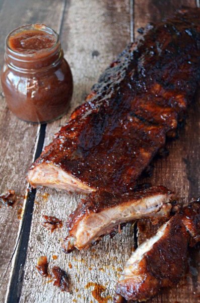 Описание: Ингредиенты* свиные ребрышки 1 кг;* лавровый лист 3 шт.;* чёрный перец 6 горошин;для соуса:* томатная паста 1,5 стакана;* соевый соус 1 столовая ложка;* уксус 1 столовая ложка;* крахмал 1 чайная ложка;* чеснок 1 зубчик;* сушеная измельчённая душица (орегано) 1 столовая ложка;* острый красный молотый перец и соль по вкусу.Нарубим рёбрышки порционно.Уложим рёбрышки в казан или обычную кастрюлю. Зальём водой так, чтобы рёбрышки немного скрылись под водой. Поставим на огонь и доведём до кипения. Убавим огонь. Пусть кипит слегка.Добавим лавровый лист и перец горошком. Накроем крышкой и оставим вариться на 50 минут или дольше. До состояния, когда мясо вот-вот будет отделяться от кости.Займёмся приготовлением соуса. Зубчик чеснока измельчим. В небольшую кастрюлю добавим все ингредиенты для соуса. Посолим по вкусу.Осторожно добавим молотый острый красный перец. Здесь надо пробовать. Соус должен получиться острым, но приятным на вкус.Летом на лесных опушках я собираю душицу. Срезаю растения с только распустившимися цветками. Веточки длиной около 20 см подвешиваю на чердаке. От высушенных веточек отделяю листья и соцветия, измельчаю, помещаю в стеклянные банки под плотную крышку.Добавляю по необходимости в чай и использую в качестве специй. Орегано импортное название нашей душицы. Так что смело можно использовать в рецепте покупную траву орегано.В соус добавим 2 столовые ложки мясного бульона, в котором продолжают вариться рёбрышки. Поставим кастрюлю с соусом на медленный огонь. Постоянно помешивая, доведём соус до густого состояния.Обязательно стоит поварить соус. Во время тепловой обработки соус насытится ароматами специй. Загустевший соус с лёгкостью пристанет к свиным рёбрышкам.Поверьте, не стоит экономить время и силы на этом этапе. Я пробовал готовить рёбрышки в сыром соусе. Конечный результат получился хуже.Вот рёбрышки отварились. Выглядят невзрачно. Можете попробовать. Мясо мягкое и нежное, легко отделяется откости.Подготовим угли. Отварные свиные рёбрышки выложим на решетку гриль и обжарим на огне до появления еле заметной корочки с каждой стороны. Таким образом из рёбрышек уйдёт лишняя влага.Теперь каждое рёбрышко окунаем в томатный соус и снова выкладываем на решетку. Осторожно горячо! Здесь понадобятся специальные щипцы. На худой конец воспользуйтесь обычной вилкой.Снова обжариваем рёбрышки на гриле примерно по 5 минут с каждой стороны. Вертите и следите, чтобы не подгорели.Готовые свиные рёбрышки выкладываем на блюдо и поливаем остатками томатного острого соуса. Вот теперь томатный соус можно сделать пожиже, похожим на консистенцию кетчупа. Для этого просто добавим в остатки соуса 1-2 столовых ложки мясного бульона и перемешаем.