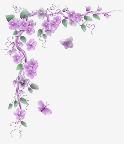Уголок для фотошопа. Лиловые цветы и бабочки