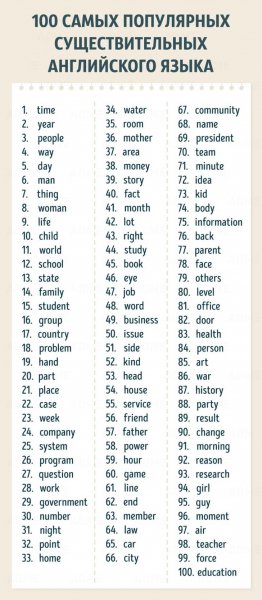 популярных Английских существительных слов