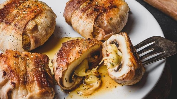 Шампиньоны в беконе - на мангале