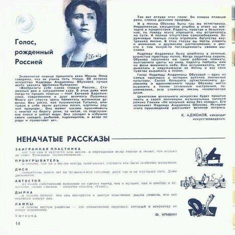 Кругозор- 02. 1964. 09 звуковая страница - Надежда Андреевна Обухова. Русский романс Не искушай меня без нужды Михаила Глинки