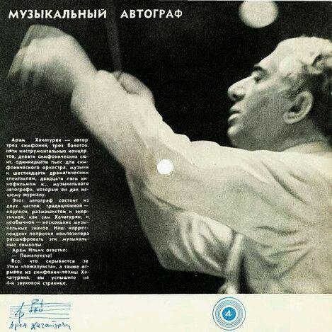 Кругозор- 01. 1964. 04 звуковая страница - Музыкальный автограф Арама Хачатуряна. Фрагмент интервью и отрывок из симфонии-поэмы А.И.Хачатуряна