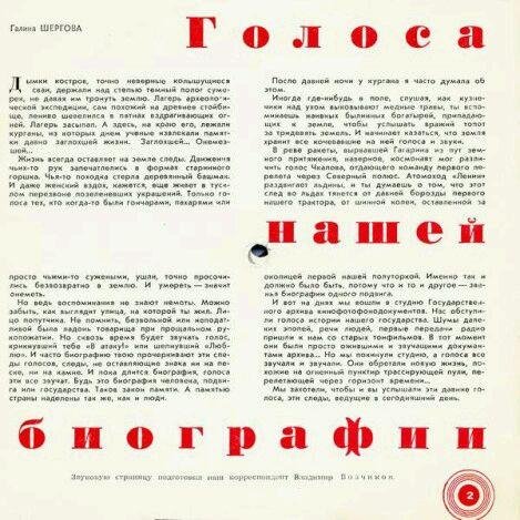 Название: Кругозор- 01. 1964. 02 звуковая страница. Голоса нашей биографии. Записи из архива кино фоно докум. - Днепрогэс-10 октября 1932 года, Братск, Ростсельмаш. Записи голоса С. Орджоникидзе, строителей Добавлен: 5 июл 2019