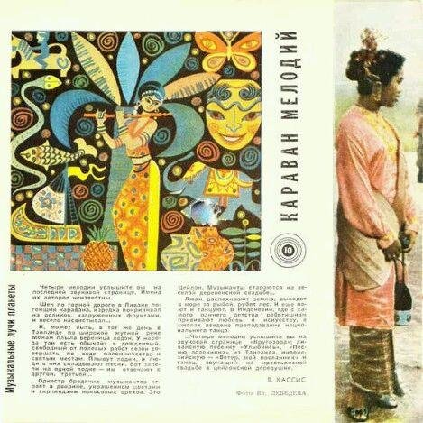 Кругозор- 04. 1964. 10 звуковая страница. Музыкальные лучи планеты. Улыбнись - Песня лодочника; Ветер, мой посланник. Танец на крестьянской свадьбе в цейлонской деревушке