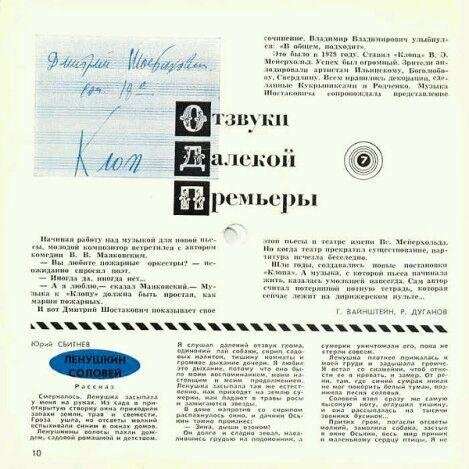 Кругозор- 04. 1964. 07 звуковая страница. Игорь Ильинский Кукрыниксы. Дмитрий Шостакович - о первой постановке комедии В. Маяковского Клоп; фокстрот к третьей картине Клопа- оркестр