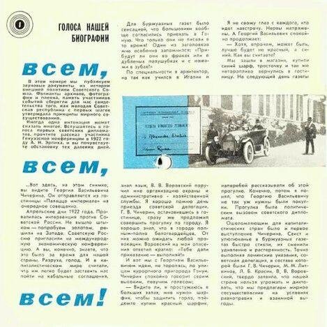 Название: Кругозор- 04. 1964. 01 звуковая страница - Голоса нашей биографии. Всем, всем, всем! Звуковые документы из истории внешней политики СССР Добавлен: 28 мая 2020
