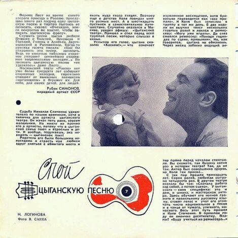 Название: Кругозор- 05. 1964. 07 звуковая страница - Николай Сличенко- артист театра Ромэн. Если в сердце ноет рана; Милая, ты услышь меня Добавлен: 29 мая 2020