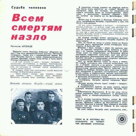 Название: Кругозор-08.1964.04 звуковая страница. Михаил Негреба - Герой книги Л.Собинова 'Морская душа', рассказывает о своей необычной судьбе Добавлен: 1 июн 2020
