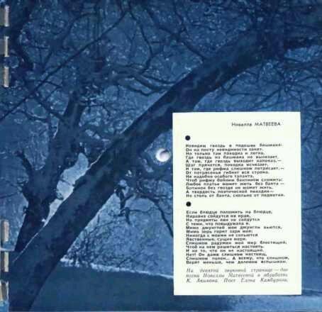 Кругозор- 02. 1965. 09 звуковая страница - Поёт Елена Камбурова. Две песни (Н. Матвеева, обр. К. Акимова)- Окраины. Песенка погонщика мулов
