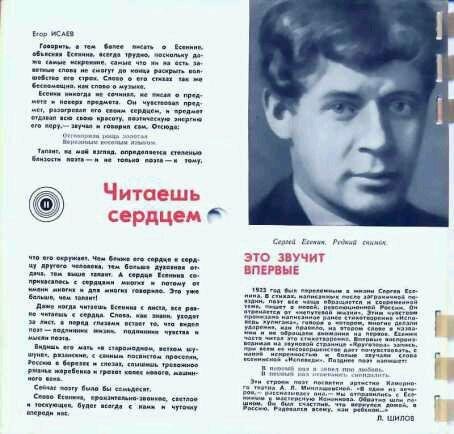 Кругозор- 03. 1965. 11 звуковая страница - Сергей Есенин. Звуковое приложение к собранию сочинений