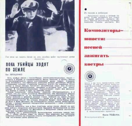 Кругозор- 06. 1965. 07 звуковая страница. Пока убийцы ходят по земле- - (Э.Колмановский-Е.Евтушенко)-А.Эйзен. Планета- целина(О.Фельцман-В.Харитонов)-Анат. Королёв