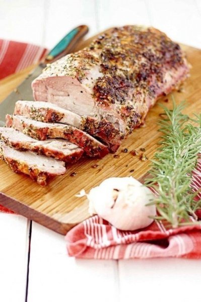 Описание: Ингредиенты:кусок свинины (лучше всего от окорока или лопатки) весом примерно 1200 г.10 зубочков чеснокаДля маринада:1 ст.л. соли1/2 ст.л. перца1/2 ст.л. сухого розмаринасок полутора лимонов2 ст.л. дижонской горчицы3 ст.л. оливкового маслаПриготовление:Все ингредиенты для маринада смешиваем в миске.Свинину нашпиговываем зубчиками чеснока.Кладем свинину в маринад и оставляем минимум на 4 часа, а лучше на ночь или даже на сутки (если маринуем долгое время, держим мясо в маринаде в холодильнике).Вынимаем мясо из маринада и кладем в огнеупорную форму жиром вверх (жир не срезаем).Накрываем фольгой и запекаем при температуре примерно 190 С около часа. Снимаем фольгу и запекаем еще 30-50 минут. У готовой свинины внутренняя температура должна быть 70 С (если у вас есть термометр для мяса, очень удобная штука, кстати).Достаем из духовки и оставляем на 10 минут. Срезаем лишний жир, нарезаем на ломтики.Подаем с овощами или салатом.