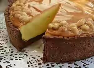 Описание: ТВОРОЖНИК СО СГУЩЕНКОЙ.ИНГРЕДИЕНТЫ:Для песочного теста:● 125 г масла● 300 г муки● 1 ч. л. разрыхлителя● 1 яйцо● 4 ст. л. сахара● 2 ст. л. какао.Для творожной массы:● 500-600 г творога● 3 яйца● 3/4 стакана сахара● 1 пачка пудинга (ванильного)● 1/2 стакана сметаны.Кроме того:● вареное сгущенное молоко● орехи (арахис, грецкие) - 50-100 г● мед - 2-3 ст. л.ПРИГОТОВЛЕНИЕ:1. Приготовить эластичное тесто: муку с сахаром, какао, разрыхлителем и маслом комнатной температуры поместить в миску и с помощью вилки превратить в крошку. Добавить яйцо и вымесить песочное тесто.Тесто выложить в круглую форму, равномерно формируя бортики.2. Приготовить творожную заливку: творог пропустить через мясорубку. Перемешать творог с порошком ванильного пудинга. Яйца взбить с сахаром. Добавить сметану.С помощью блендера (миксера) смешать творог с яичной массой.3. На тесто выложить творожную массу.Поставить творожник в разогретую духовку и выпекать 50-55 минут при температуре 180 градусов.4. Пока пирог остывает, орехи выложить на лист для выпечки в один слой. Выпекать в течение 5 минут. Проверять на готовность, если не совсем достаточно обжарились, подождите еще 1 или 2 минуты. Будьте осторожны, чтобы орехи не сгорели! Достаньте их из духовки и остудите.Нагреть мед на водяной бане, пока он не станет жидким. После этого сразу добавить орехи в мед и быстро перемешать так, чтобы орехи полностью покрылись медом. После этого разложить их на листе для выпечки так, чтобы отлепить орехи друг от друга, необходимо это сделать быстро.5. Остывший творожник сверху покрыть вареным сгущенным молоком и украсить орехами с медом.Я присыпала орехи еще коричневым сахаром.Приятного аппетита!