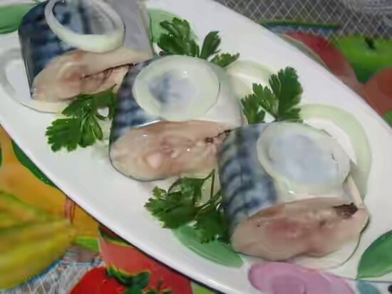 Описание: Как просто замариновать скумбрию на Новый годВкусная рыбка собственного приготовления станет изюминкой любого праздничного застолья. Вкуснейшую маринованную скумбрию оценят по достоинству все гости без исключения.Вам понадобятся следующие продукты:- 3 штуки с/м скумбрии- 2-3 луковицы- 3-4 зубчика чеснока- по 1 ч.ложке сахара и соли- 100-120 мл уксуса- 120-150 мл раст.масла- лавр.лист, острый перец молотый, душистый перец по вкусуПриготовление:1. Подмороженную скумбрию почистить и порезать на кусочки шириной около 2 см. Важно, чтобы рыба не размякла в процессе, она должна быть замороженной.2. Скумбрию положить в кастрюльку, туда же высыпать порезанный лук и чеснок.3. Добавить уксус, масло, лаврушку и перец.4. Всё аккуратно перемешать.5. Из кастрюли рыбу необходимо переместить в банку и закрыть крышкой.6. Банку примерно на сутки поставить в холодильник.7. При размораживании рыбка даст сок, который смешается с маринадом и сделает её очень вкусной. Перед подачей на стол скумбрию нужно вытащить из банки и красиво разложить, украсив зеленью, дольками лимона или ягодами клюквы.Маринованная скумбрия - просто деликатес, особенно, если она приготовлена своими руками и по правильному рецепту. Она украсит новогодний стол, и гости оценят ваши кулинарные таланты.Приятного аппетита!