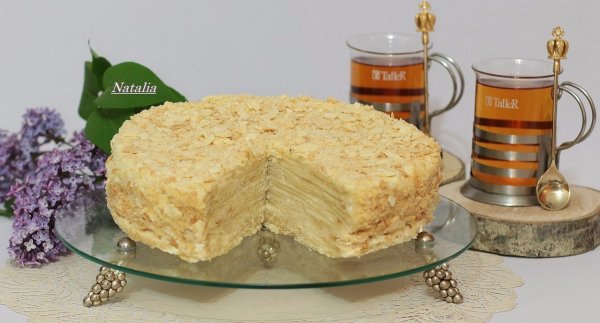Описание: Состав: 3ст. муки, 200гр маргарина, 0,5 ст. воды, 2ст.л уксуса 9%.Для крема: 5ст. молока, 500-600гр мороженого Пломбир, 300гр сливочного масла, 1,5-2 ст. сахара, 2 яйца, 3-4 ст.л муки, 20 гр ванильного сахара.Приготовление: Маргарин натереть на тёрке, добавить к нему уксус, воду и муку. Замесить тесто и отправить в холод на 1-2 часа. Из полученного теста сформировать 20 шариков. Каждый шарик раскатать диаметром 24 см, с помощью тарелки такого диаметра обрезать неровные края у нашего коржа. Полученный корж прокалываем вилкой и выпекаем при 200* до золотистого цвета. Полученные коржи сложить стопкой.Для крема:Яйца взбить с сахаром, ванильным сахаром, мукой и мягким пломбиром, молоко доведём до кипения и вольём тонкой струйкой в наши ингредиенты. Всё тщательно перемешаем и отправим нашу массу на медленный огонь, интенсивно помешивая наш крем, варим до загустения, но не доводя до кипения и сильного бурления. Готовый крем остужаем до комнатной температуры, добавляем в него мягкое масло и взбиваем всё миксером. Наш крем готов. Полученным кремом промазываем наши коржи. Два коржа оставляем для посыпки. Оставляем пропитаться на сутки. Наш торт готов. Приятного аппетита!!! Радуйте себя и своих близких!!! (По рецепту С Шевчук).