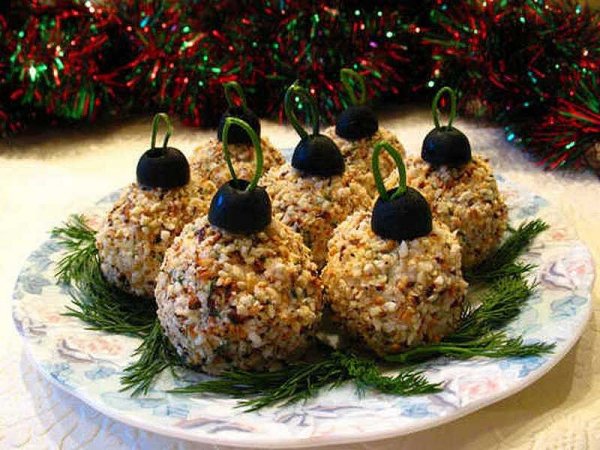 Описание: Ингредиенты:филе куриной грудки - 300 гр., сыр 200 гр., зелень, грецкие орехи горсть, чеснок (по желанию), майонез (или другой соус по желанию), оливки.Приготовление:1. Филе куриной грудки отвариваем в подсоленой воде (15-20 минут) и мелко нарезаем. Сыр трем на мелкой терке. Зелень мелко режем. Грецкие орехи измельчаем. Добавляем раздавленный чеснок. Просто смешиваем все компоненты и заправляем майонезом.2. Скатываем из полученной массы шарики. Обваливаем в ореховой крошке, из половинок оливок делаем крепления, из зелени петельки.Приятного аппетита!