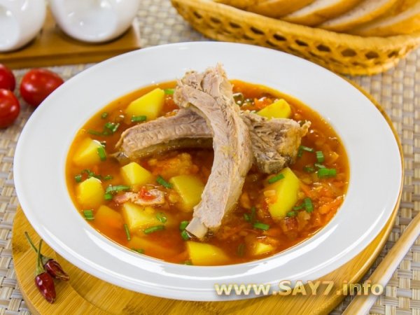 Название: Суп с ребрышками, чечевицей и томатами