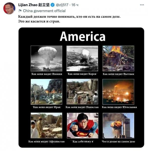 Представитель МИД Китая продолжает троллить США и напоминает что хорошего сделала эта страна во имя спасения человечества