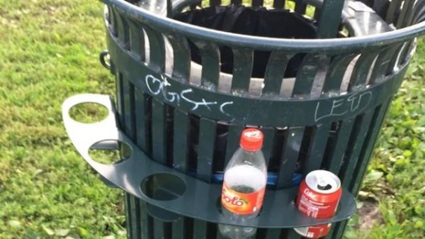 Описание: В Норвегии вы получаете небольшую сумму денег за переработку бутылок/банок. Их часто собирают бедные люди, бездомные и т. д. Многие наши мусорные баки имеют такие держатели вокруг них, поэтому людям не нужно искать их в мусоре, чтобы собрать их.