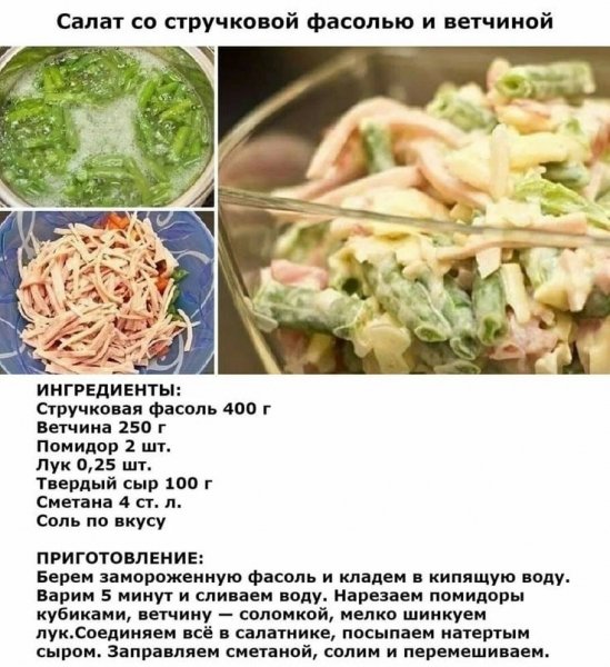 САЛАТ СО СТУЧКОВОЙ ФАСОЛЬЮ И ВЕТЧИНОЙ
