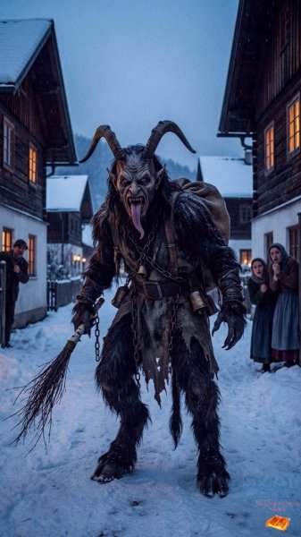 Описание: КрампусЛегендарная фигура в фольклоре альпийского региона, «рождественский чёрт», спутник и одновременно антипод Николая Чудотворца, а также название обходного обряда в ночь с 5 на 6 декабря.