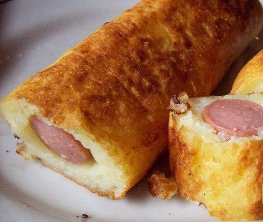 Описание: Сосиски в картошке.Ингредиенты:4 средних, отваренных вмундире картофелины-3 сосиски-2 яйца-3-4 ст. л. муки (инемного муки дляпанировки)-1-2 зубчика чеснока-растительное масло(для жарки)-соль, чёрныйсвежесмолотый перец -по вкусу.Приготовление:Готовим картофельноетесто для сосиски.Картофель очистить,натереть на тёрке.Добавить яйца, соль,перец, тщательноперемешать. Добавитьмуку, перемешать.Картофельное "тесто"готово. Подготовитьсосиски.Влажными руками взятьнемного картофельноготеста, распределить поруке, положить сосискуи распределитькартофельное тесто так,чтобы оно закрылососиску со всех сторон.Запанироватьполученную "палочку" вмуке. Аналогичноповторить дляостальных "палочек".Растительное маслоразогреть, добавить кнему крупнонарезанный чеснок ипрокалить. Следить,чтобы чеснок неподгорел. Чеснок убратьиз масла. На чесночноммасле обжарить сосискув картошке доустойчивой золотистойкорочки. Выложить набумажные салфетки,чтобы удалить излишкимасла. Нарезать напорционные кусочки иподавать к столу свашими любимымисоусами.
