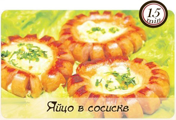 Описание: Яйцо в сосиске.Ингредиенты:3 длинные сосиски(например, венские),3 яйца,2-3 ст. ложки майонеза,масло сливочное ирастительное дляобжарки,соль,зелень салата ипетрушки,перец.Понадобятся еще двепалочки для китайскойеды.Рецепт приготовления:Положить сосискумежду палочками инарезать наодинаковые сегменты.Палочки помогут непрорезать сосискунасквозь. Закрепитьсосиски деревяннымишпажками илизубочистками. Яйцавыпустить в миску,добавить майонез, сольи хорошенько взбить.На сковороде сразогретым сливочными растительным масломобжарить сосиски содной стороны,перевернуть, залитьяичной смесью идовести до готовности.Подавать на листьяхсалата, посыпав мелкопорубленнойпетрушкой.